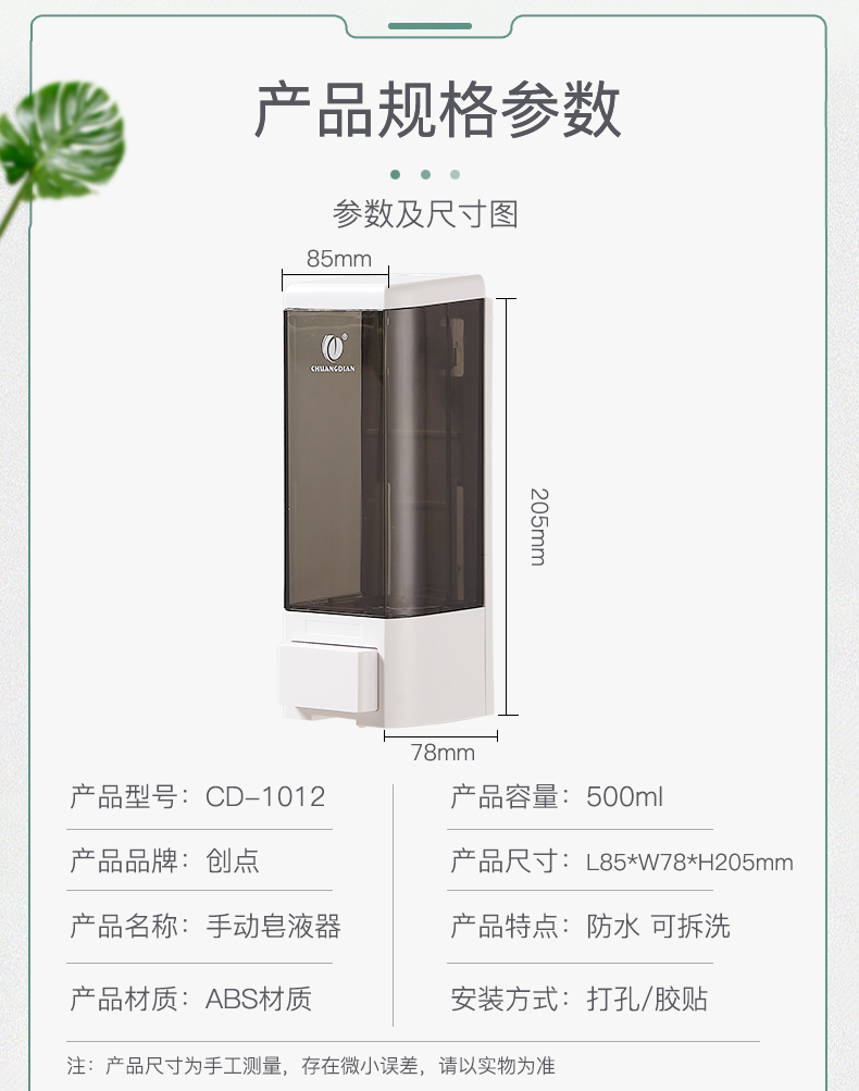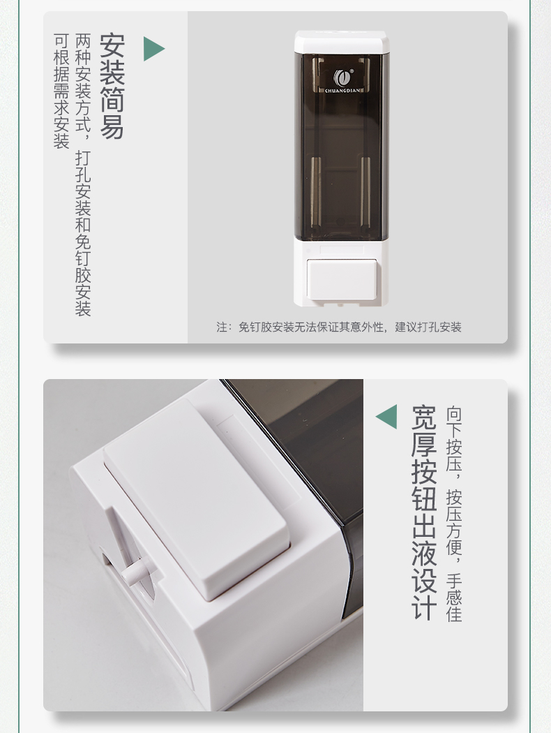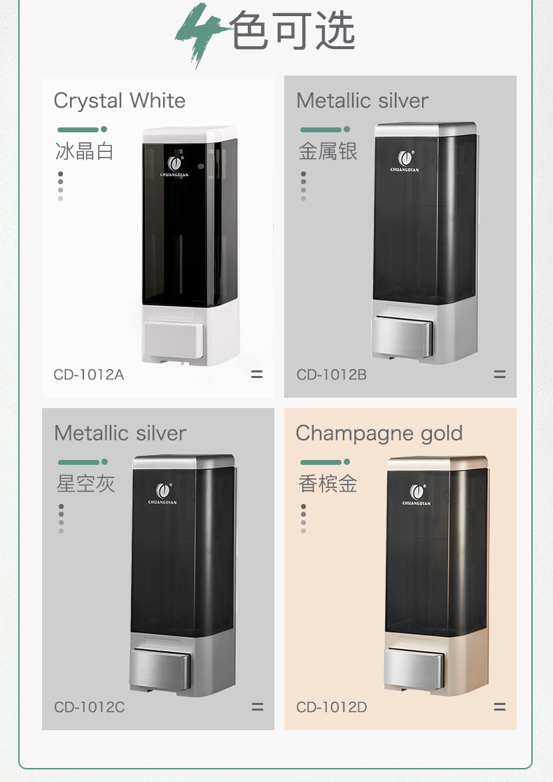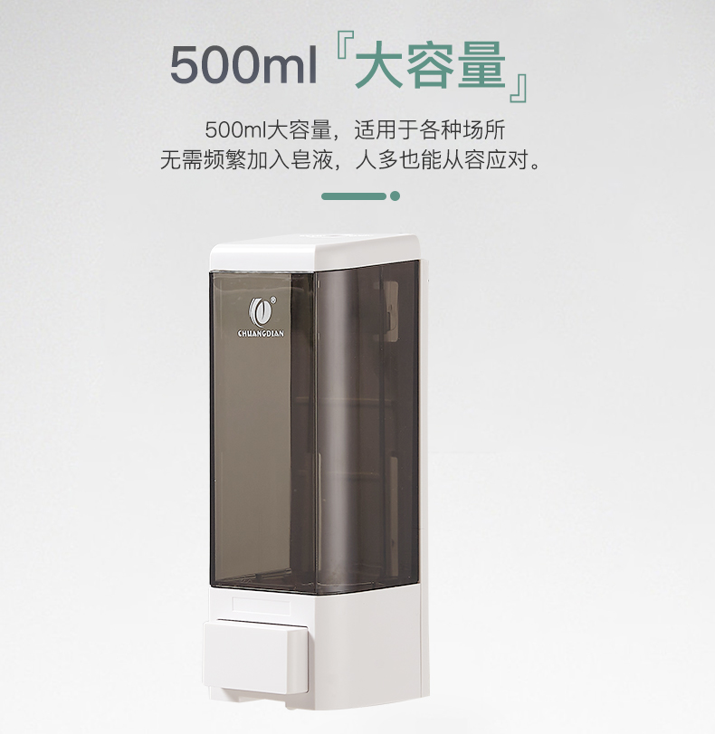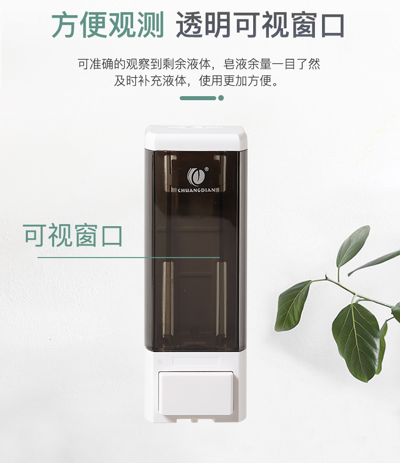 创点(CHUANGDIAN)CD-1012A免打孔酒店宾馆挂墙皂液器浴室卫生间洗手液瓶按压式洗发沐浴露盒500ml 自营